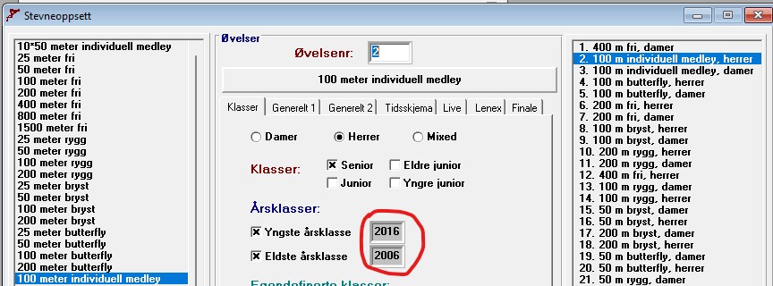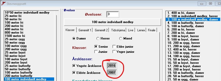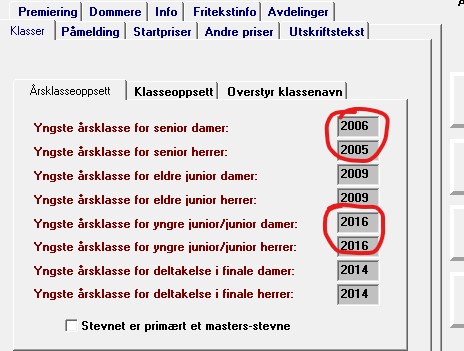 På krets/regionstevner kan 9 og 10-åringer inviteres, dvs yngste klasse kan være født 2016.